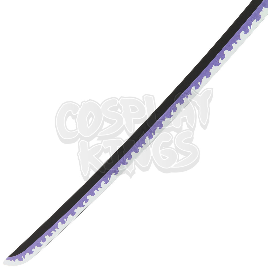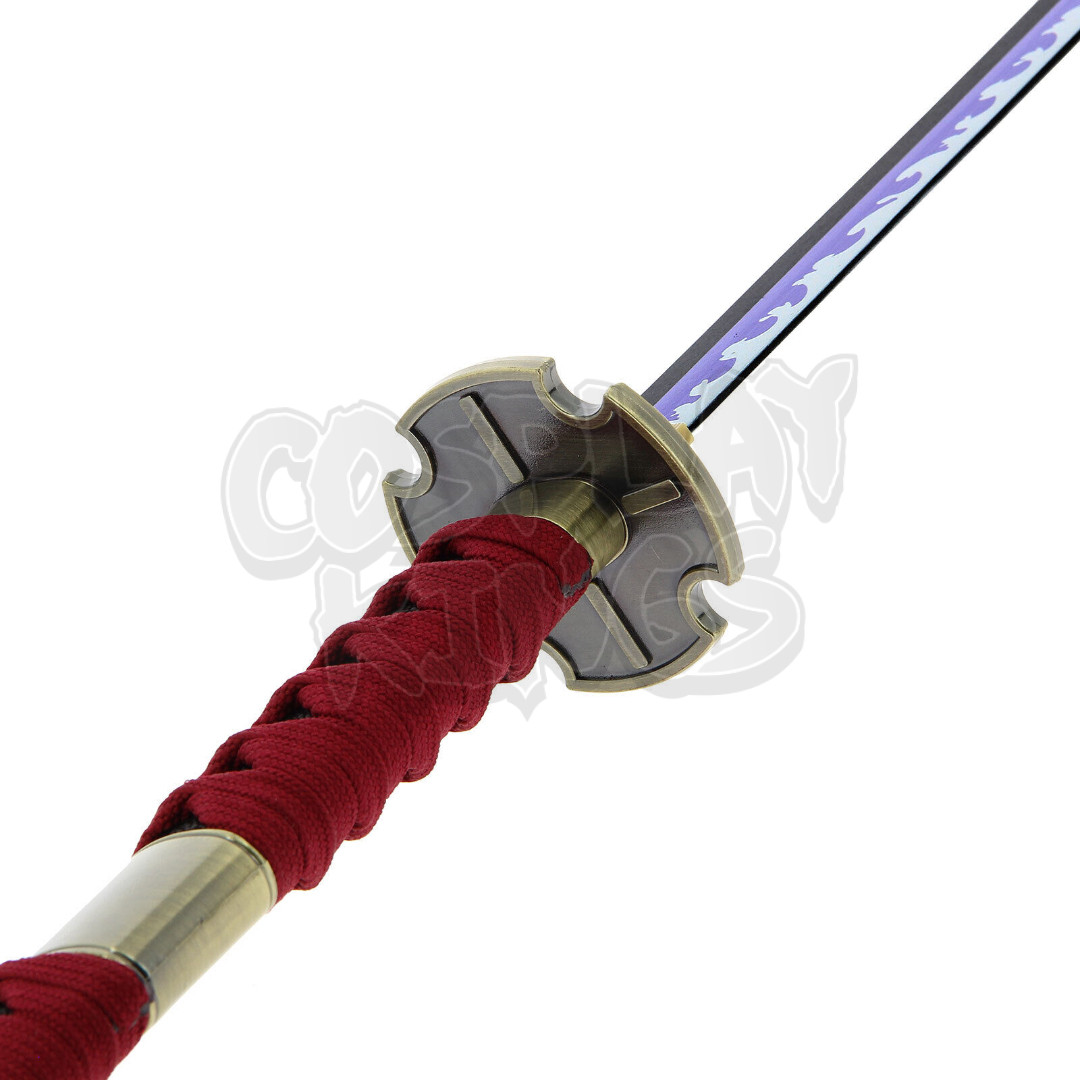 The Sandai Kitetsu is one of the great grade swords. Like all of its predecessor swords, this one is said to be a “Cursed Sword/Blade” . It is one of Koziki’s creations. This wooden replica is red, gold, black and purple! Comes with matching red sheath.