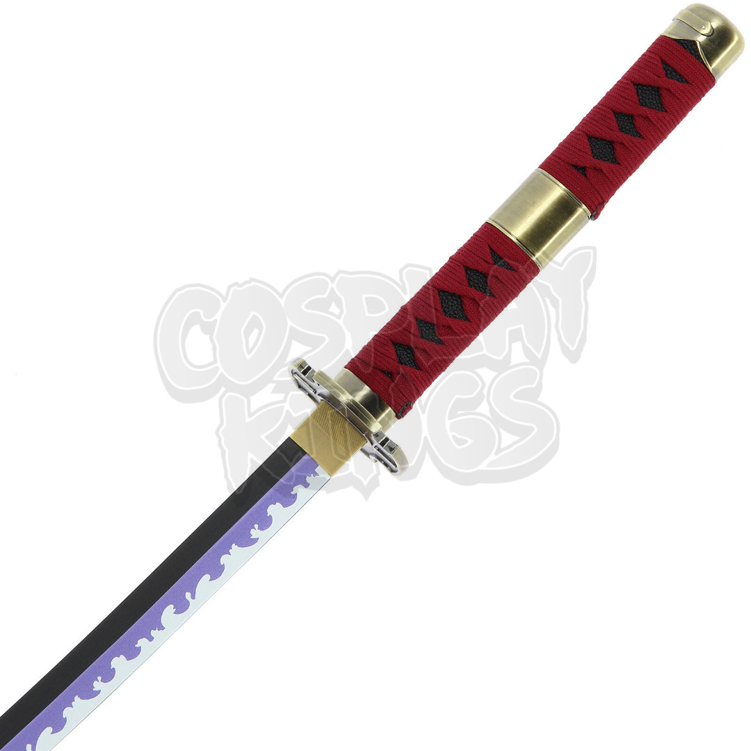 Introducing Sandai Kitetsu, one of the legendary cursed swords wielded by Roronoa Zoro in his quest to become the world’s greatest swordsman. Known for its menacing aura, Sandai Kitetsu is the third generation of the Kitetsu family’s cursed blades. The katana features a distinctive, slightly curved blade that exudes a dark, ominous presence, making it a force to be reckoned with. Despite its dangerous nature, Zoro masters its power with unparalleled skill, showcasing his ability to wield even the most treacherous of swords. Whether you’re a One Piece aficionado or a collector of legendary weapons, Sandai Kitetsu is a must-have tribute to Zoro’s unyielding strength and determination.