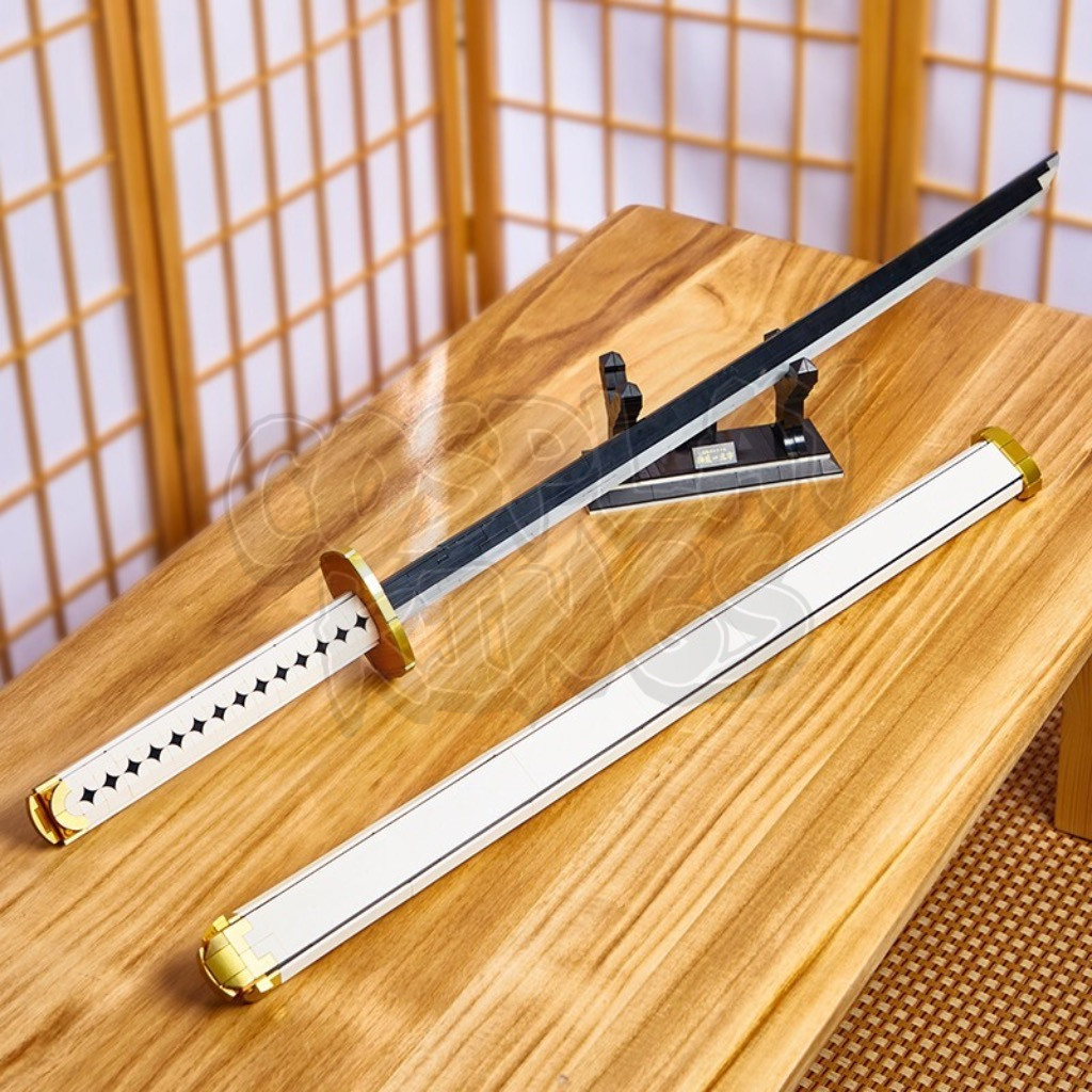 Wado Ichimonji is one of Roronoa Zoro’s signature swords in One Piece and a treasured Great Grade (Ō Wazamono) sword. Originally wielded by Kozuki Kuina, Zoro’s childhood rival and friend, the sword was entrusted to him after her passing, symbolizing his promise to become the World’s Strongest Swordsman. Wado Ichimonji is known for its exceptional durability, sharpness, and elegant white sheath and hilt. It is a blade of great sentimental value, often used in Zoro’s most powerful techniques, including his Three-Sword Style (Santoryu) and One-Sword Style (Ittoryu). With this sword, Zoro carries both his ambition and the will of his fallen friend, cutting his way toward greatness with unwavering resolve.